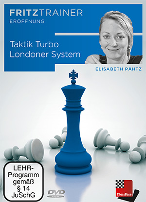 Das Londoner System erfreut sich steigender Beliebtheit auf Großmeisterebene wie auch im Klubschach. Die Theorie der Eröffnung entwickelt sich rasch weiter, und ständig wird Neues ausprobiert. Dadurch ergeben sich auch immer frische taktische Ideen, welche zum Grundrepertoire eines jeden London-Freundes gehören sollten - denn Taktik ist und bleibt das A und O des Spiels. Auf dieser DVD stellt Elisabeth Pähtz so ziemlich alle Verwicklungen vor, die es mit Weiß zu kennen gilt. Wer das Londoner System liebt und die Eröffnung studiert hat, erhält damit das taktische Rüstzeug für eine erfolgreiche Praxis - denn wer die typischen Motive kennt, ist am Brett im Vorteil. Profitieren können von den Turbo-Übungen natürlich auch diejenigen, die das Londoner System (noch) nicht in ihrem Repertoire haben. Ein scharfer kombinatorischer Blick ist schließlich immer gut. Mit Hilfe des interaktiven Formats, bei dem der Anwender aufgefordert wird, am Bildschirm durch die Eingabe von Zügen Fragen zu beantworten, lädt Elisabeth Pähtz zum Mitmachen und Mitdenken ein und vermittelt dank dieser Technik auf intensive und systematische Weise die Kenntnis einer Vielzahl typischer taktischer Finessen in Stellungen des Londoner Systems.