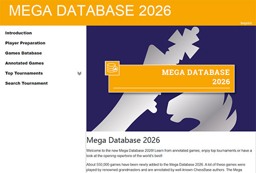 The ChessBase Mega Database 2026 is the premiere chess database with over 11.7 million games from 1475 to 2025 in high quality.